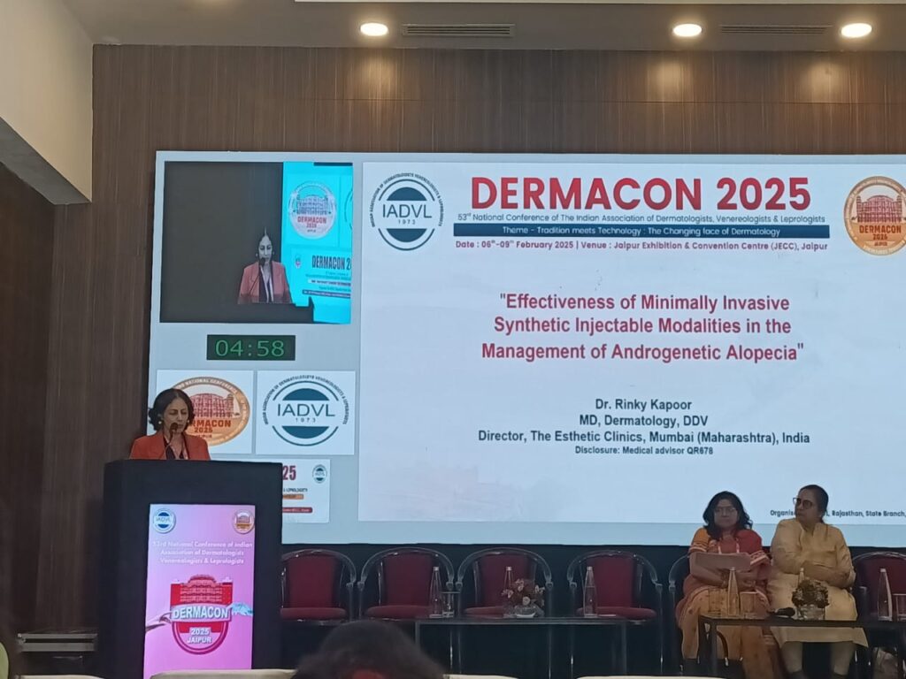 Renowned dermatologist Dr. Rinky Kapoor, representing TECCRO, delivered an insightful oral presentation on “Effectiveness of Minimally Invasive Injectable Modalities in the Management of Androgenetic Alopecia.” Additionally, she showcased a poster presentation on “Which Peel Works for What in Pigmented Skin Types.”